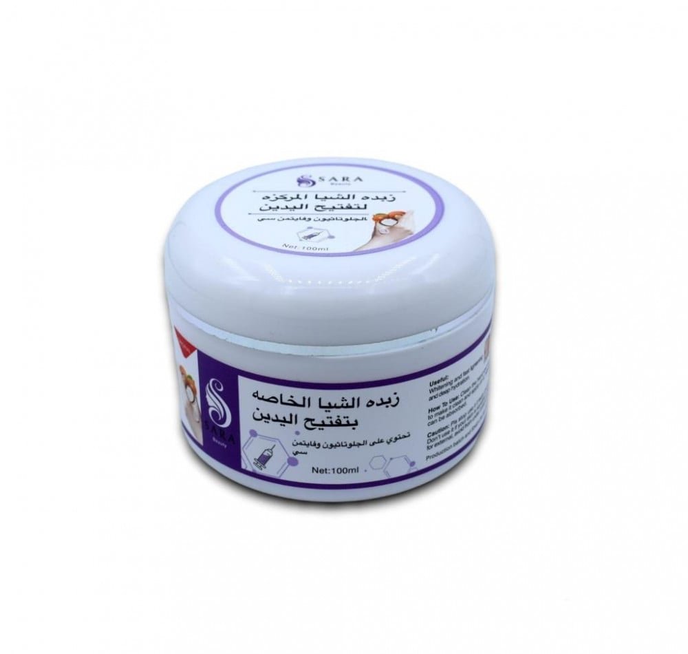 زبده خاصه بتفتيح اليدين ومحاربه شيخوخه الجلد وتفتيح المفاصل وتقويه الاظافر لإحتوائها على الفيتامينات التي يحتاجها الجلد والجلوتاثيون وفايتمن سي لتفتيح المضاعف.