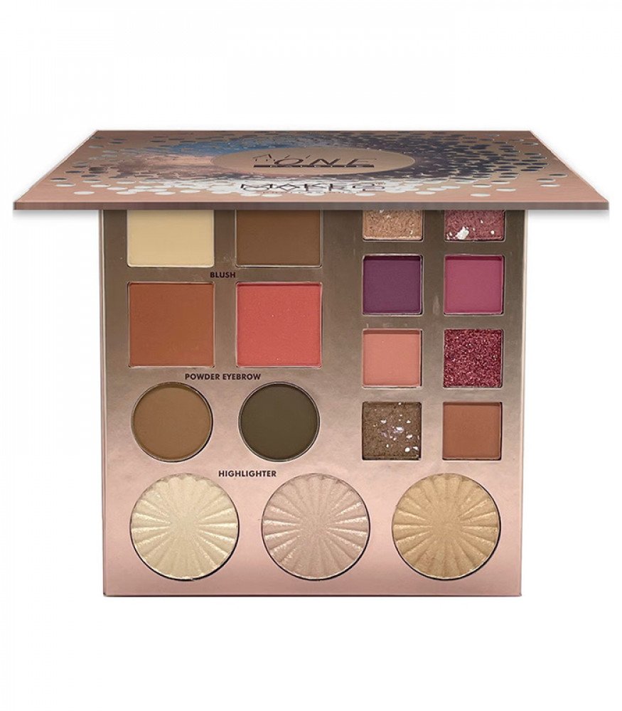 تحتوي على 8 ألوان ظلال عيون لامعة ومطفية، و3 ألوان اضاءة، 2 احمر خدود 1 محدد وجه، 1 بودرة بنانا، و 2 بودرة حواجب.