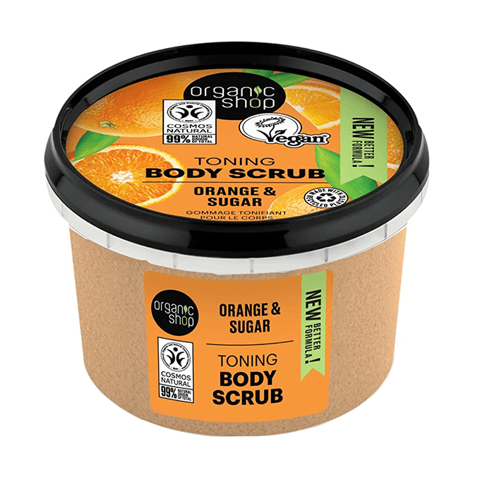 مقشر جسم غني بزيت البرتقال العضوي والسكر الطبيعي يعمل على استعادة نعومة وليونة بشرتك على الفور.